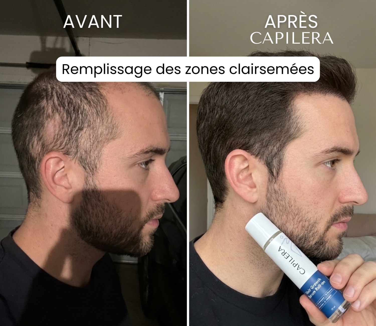 “J'ai 42 ans et j’avais des trous vraiment visibles, et en quelques semaines les zones se sont remplies. Je n’avais jamais vu mon cuir chevelu aussi uniforme.”