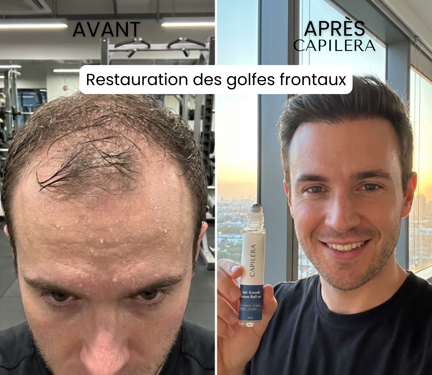 “Mes golfes reculaient de plus en plus… maintenant les côtés du front se sont remplis tout doucement, et ça fait super naturel.”
